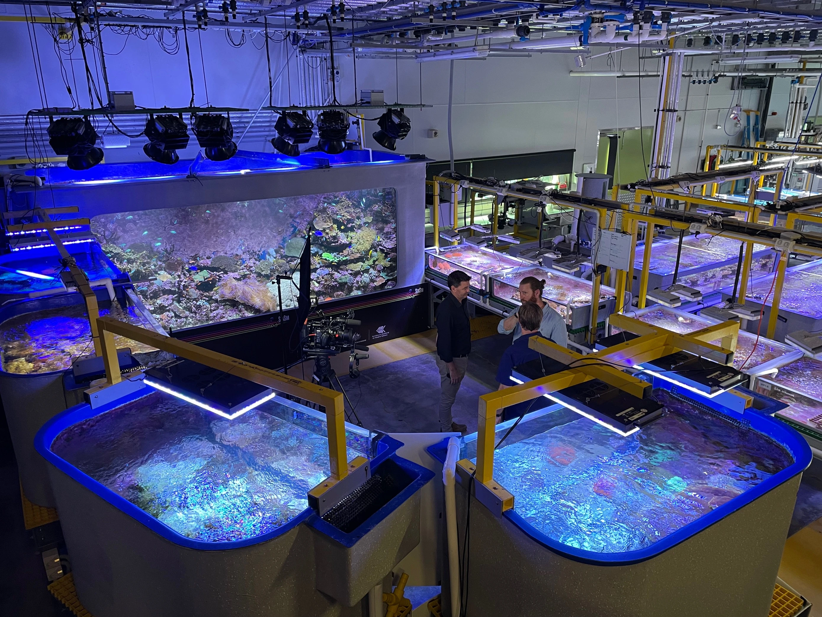 Um diesen Problemen auf den Grund zu gehen, forscht das AIMS mithilfe des National Sea Simulator. Diese Einrichtung ist das modernste Forschungsaquarium der Welt. Mittels hoch automatisierter Systeme können an jedem einzelnen Becken verschiedene Parameter verändert und überwacht und so die Verhältnisse im Riff nachgestellt werden. Temperatur, Salzgehalt, Nährstoffreichtum, Lichtfarbe, Säuregehalt und Wasserqualität können nach Bedarf und Forschungsinteresse variiert und reguliert werden.