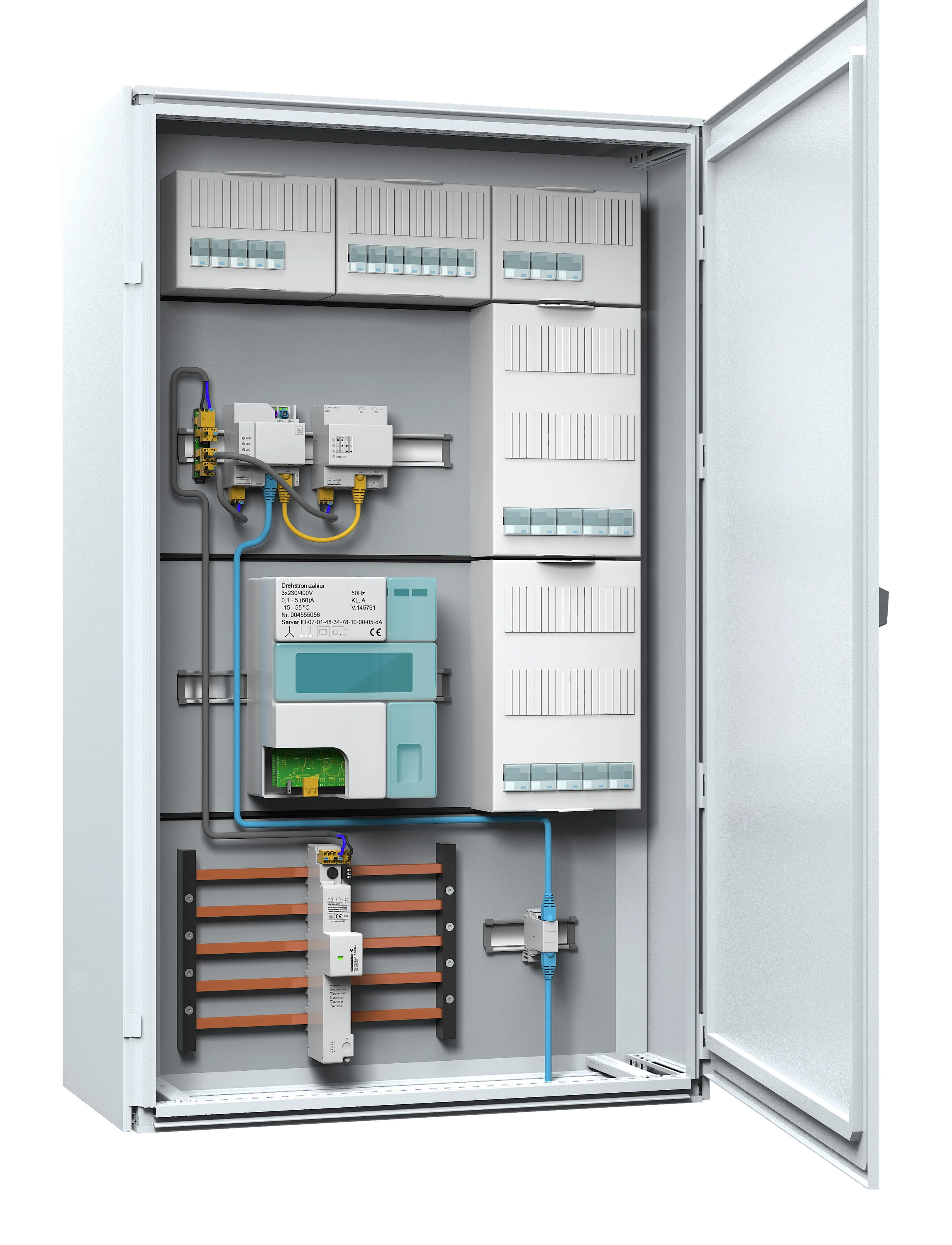 Weidmüller präsentiert Lösungen zur Energie- und Datenübertragung für intelligente Messsysteme. Ein Highlight sind FNN-konforme Komponenten für die Umrüstung von bestehenden Zählerplätzen.